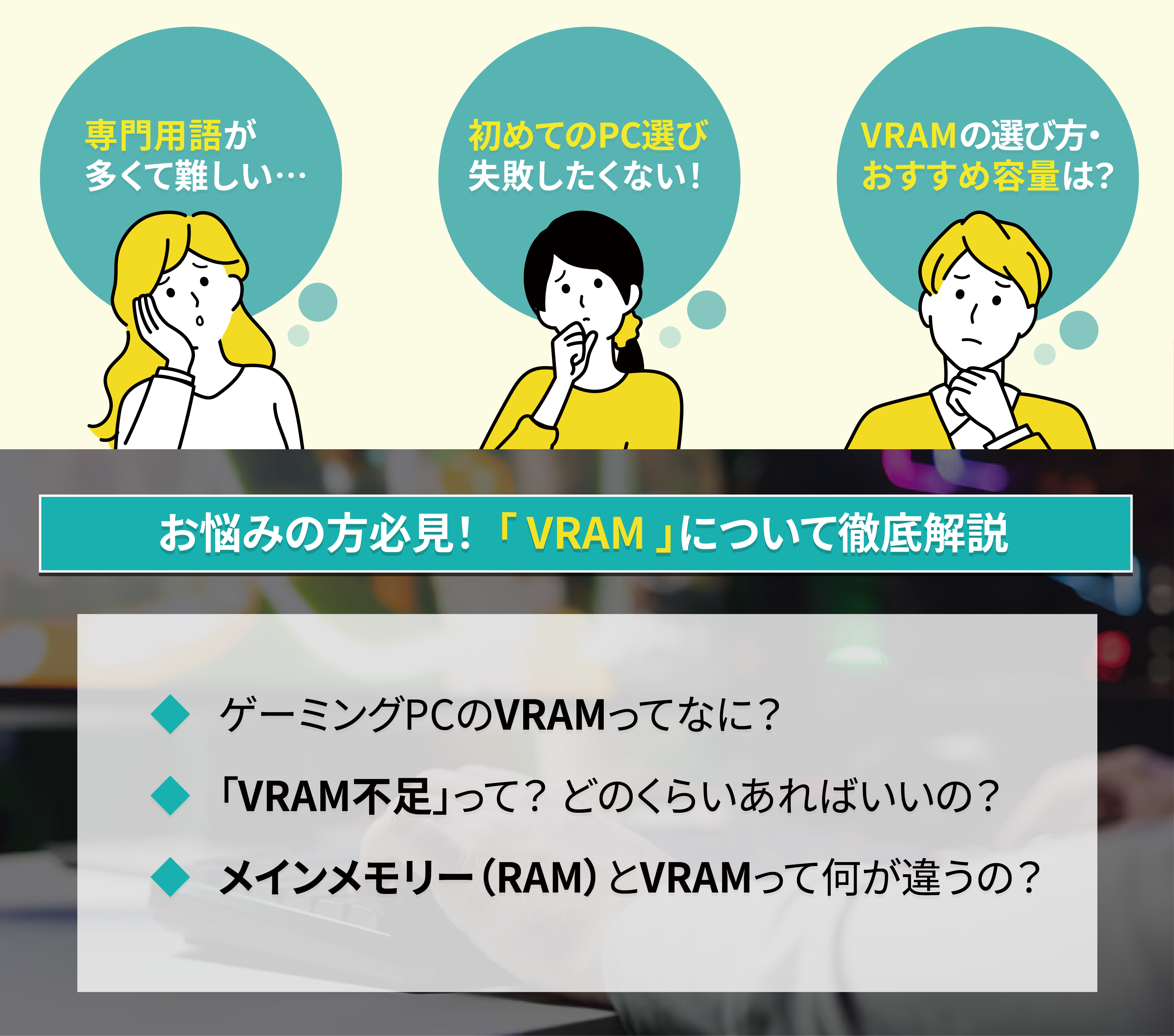 これから初めてゲーミングPCを選ぶ方はもちろん、今使っているPCのVRAMを確認して見直したい方にも必見です!